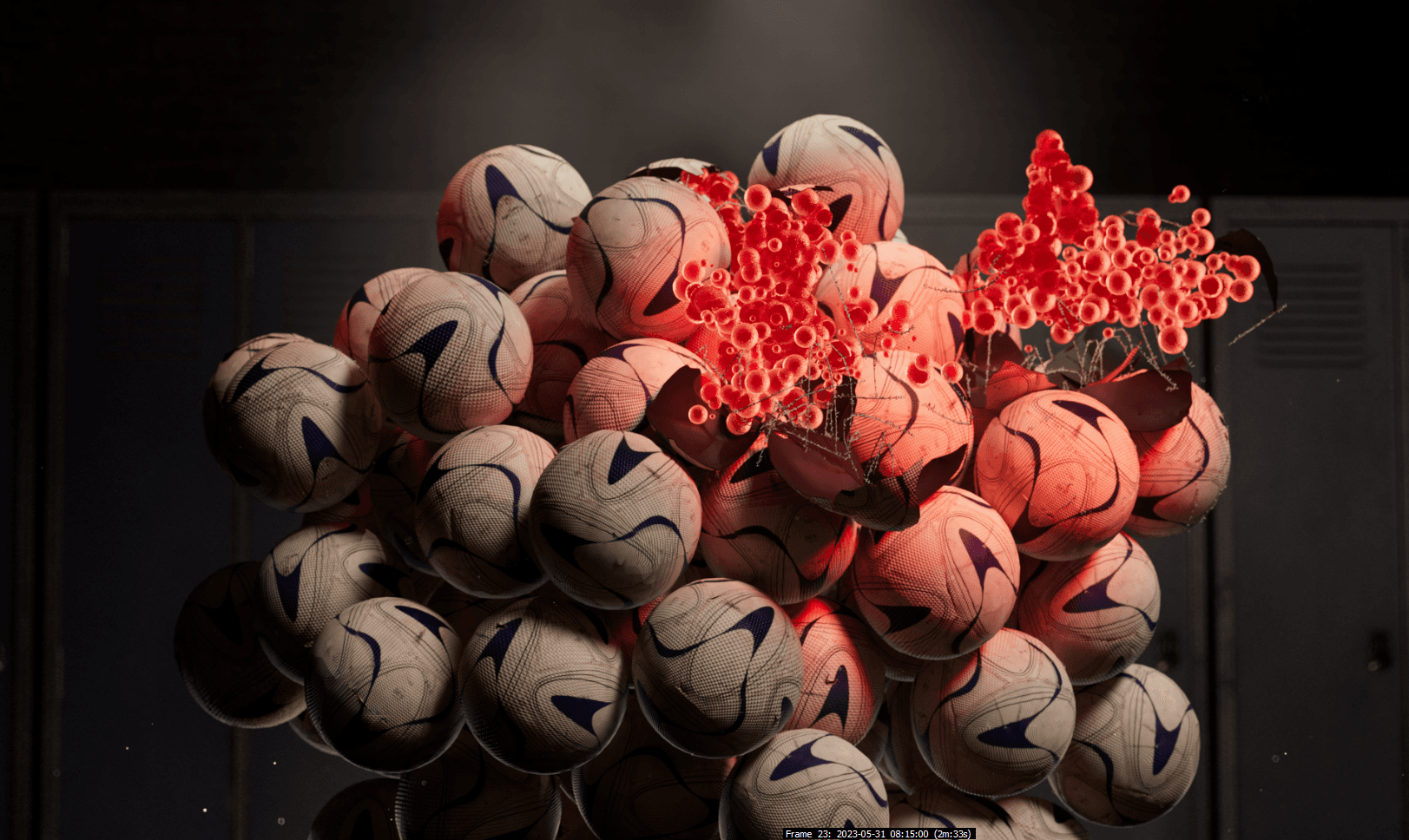 For this spot, we were inspired by soccer and the type of madness that can go down in the locker room. We leveraged soccer balls as a way to create a sense of chaos, derived from the electrolyte orbs trapped within them. What was left was a vibrant, zero gravity-type environment with these neon orbs illuminating the space and revealing the origin: Powerade.