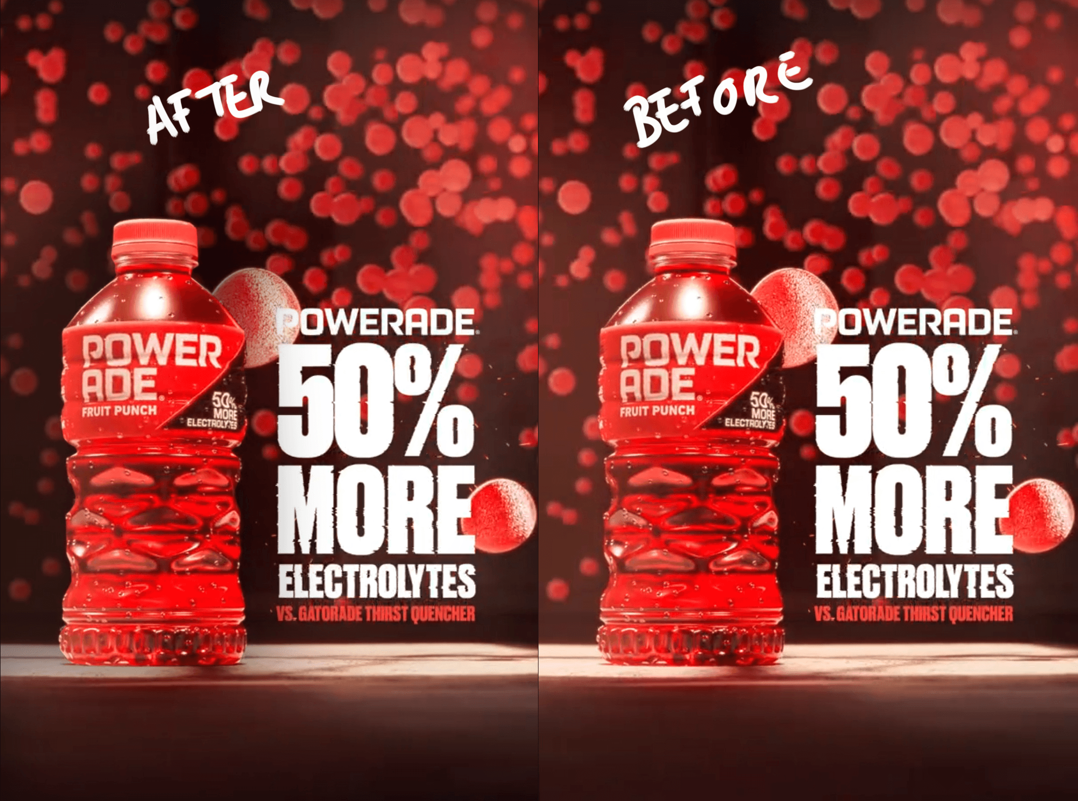 May 2023New formula, more madness. We were tasked with creating exciting new content to launch Powerade's new US social accounts. With 50% more electrolytes, it was only right to push creative 200% more.